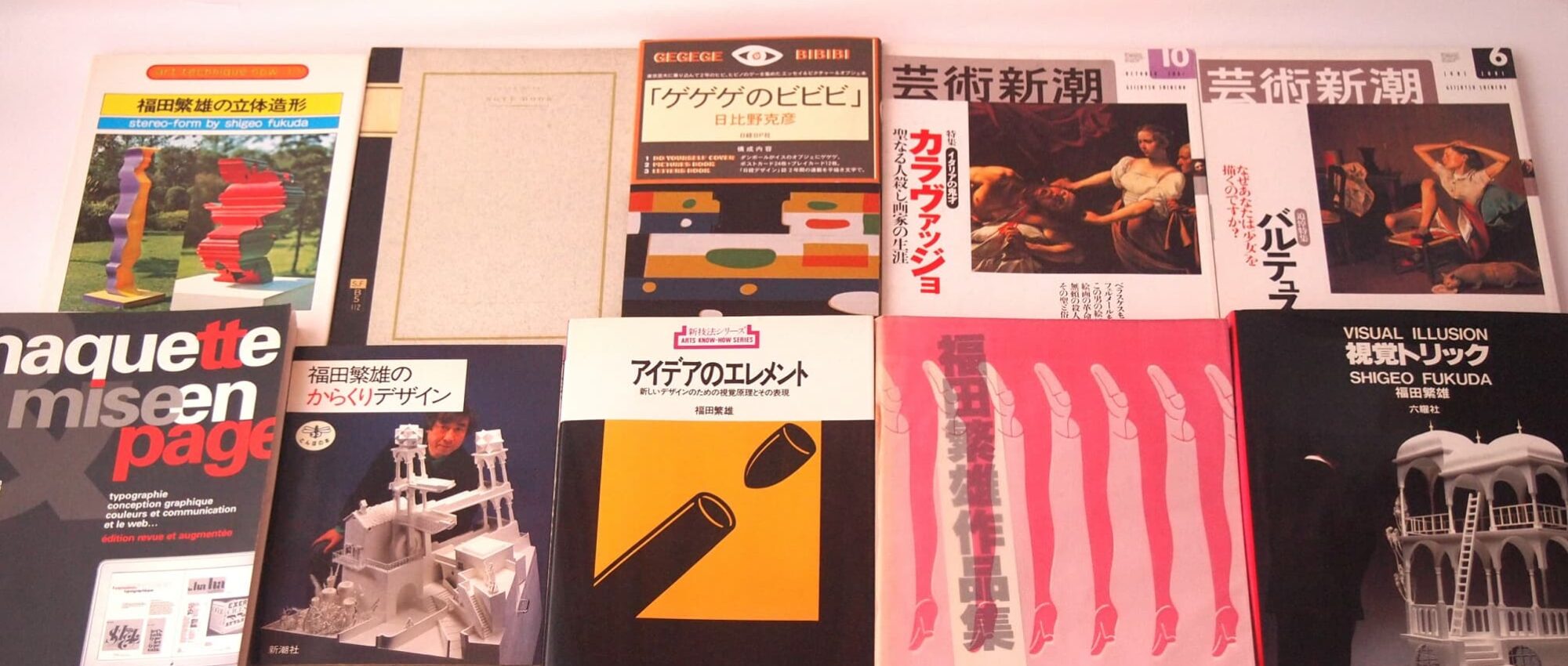 福田繁雄さんによる『視覚トリック VISUAL ILLUSION』『福田繁雄作品集』『福田繁雄の視覚からくり展』『福田繁雄のからくりデザイン』『福田繁雄の立体造形 アート・テクニック・ナウ 11』『アイデアのエレメント 新しいデザインのための視覚原理とその表現 新技法シリーズ』、日比野克彦さんによる『ゲゲゲのビビビ GEGEGE NO BIBIBI 東京芸大に乗り込んで2年のヒビ。ヒビノのゲーを集めたエッセイ&ピクチャー&オブジェ本』、『maquette & mise en page typographie, conception graphique, couleurs et communication, et le web…』、「芸術新潮 618号 バルテュス なぜあなたは“少女”を描くのですか?」「芸術新潮 622号 イタリアの鬼才 カラヴァッジョ 聖なる人殺し作家の生涯」 etc… 10冊追加いたしました!