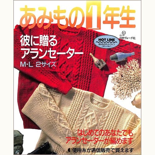 あみもの1年生 彼に贈るアランセーター M・L 2サイズ はじめてのあなたでもアランセーターが編めます